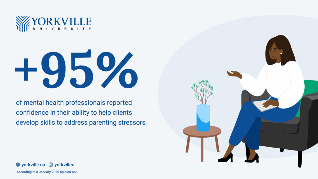 Despite these concerns, the Yorkville University poll also revealed reasons for hope: More than 95 per cent of mental health professional respondents reported confidence in their ability to help clients develop skills to address parenting stressors, including resilience, coping, emotional regulation, stress management, and problem-solving techniques. Approximately 81 per cent of counsellors and trainees say the mental health practitioner community is growing to meet the needs of clients.