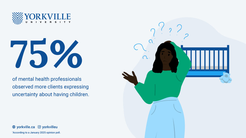TORONTO, ON, January 16, 2025 – There’s increasing concern about the mental health of parents as they try to navigate their children’s futures, while other adults contemplate whether to have children at all, according to early-January opinion polls conducted by Yorkville University’s Faculty of Behavioural Sciences and Abacus Data.